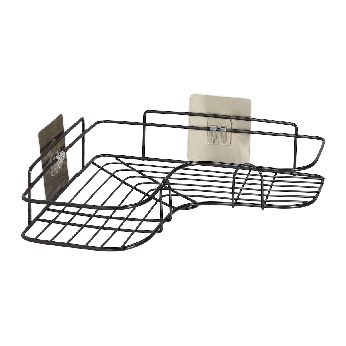 Relaxdays Eckregal Küche, zum Kleben, Aufbewahrung, Gewürze & Kräuter, Wandregal HxBxT 5,5 x 26 x 26 cm, Eisen, schwarz