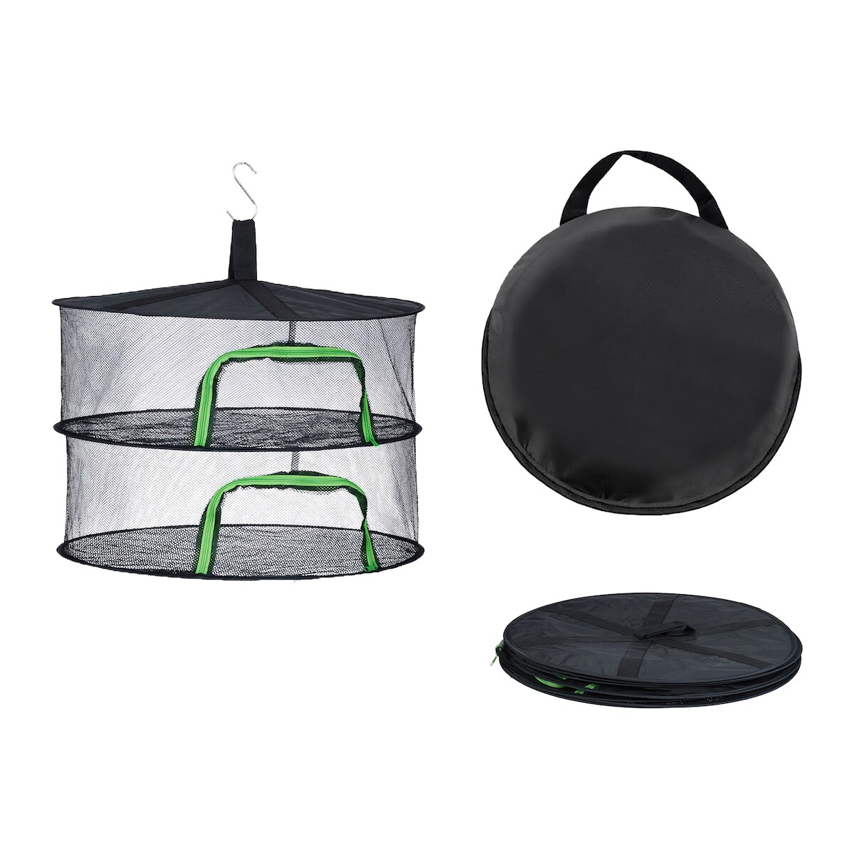 Relaxdays Trockennetz faltbar, Dörrnetz 2 Ebenen für Kräuter, Obst, Gemüse, Fischtrockner zum Aufhängen, grün/schwarz