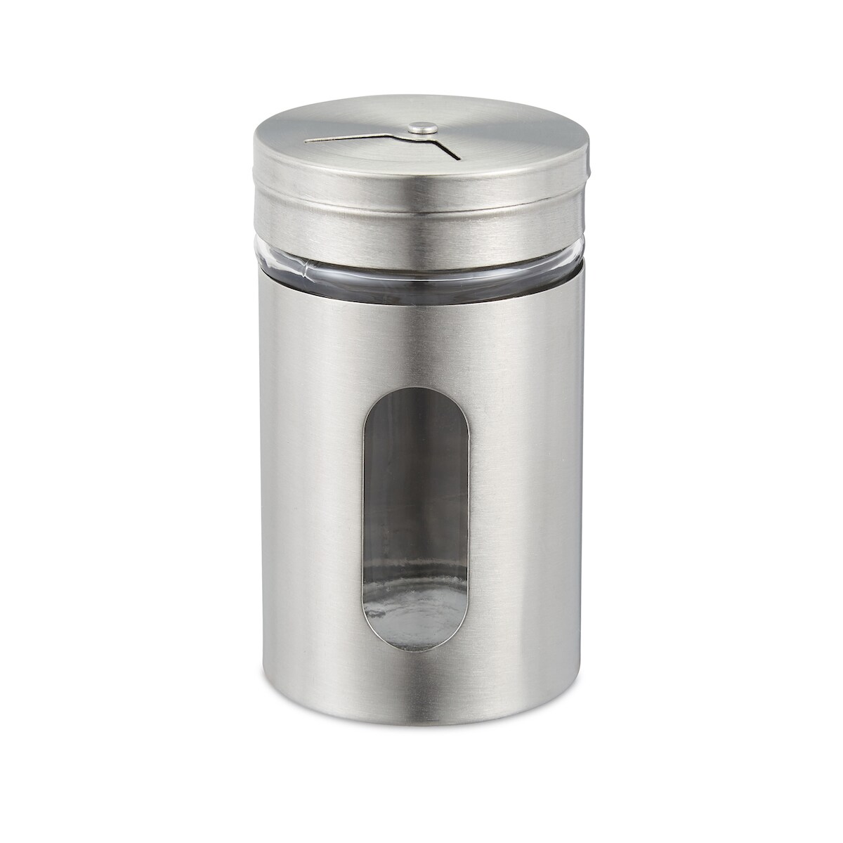 Relaxdays Gewürzstreuer, 12er Set, 3 Streugrößen, Sichtfenster, Gewürze & Kräuter, Glas, Edelstahl, Gewürzgläser, silber
