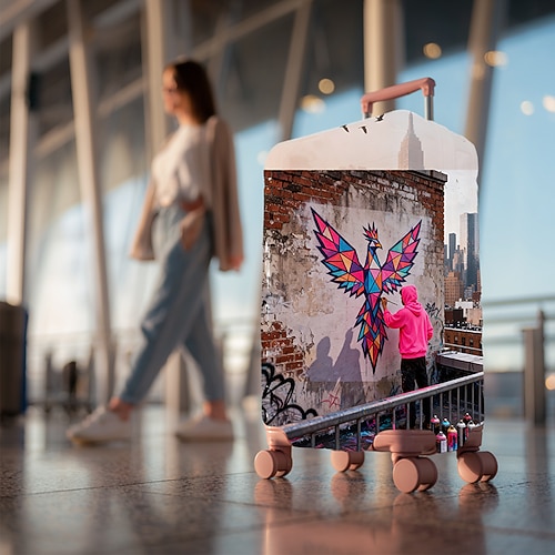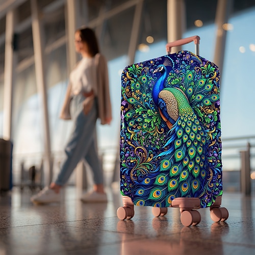 elegante coprivaligia con piume di pavone, protezione elastica per valigia da viaggio con stampa di uccelli colorati