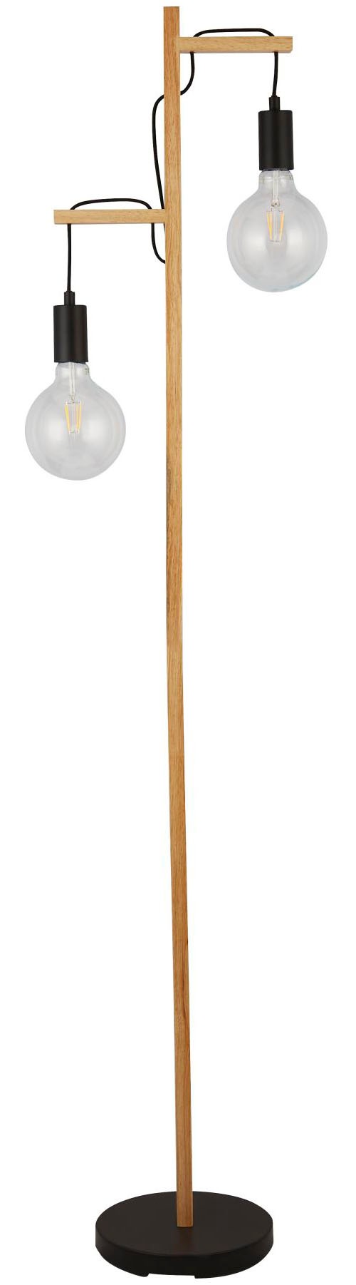 SEARCHLIGHT Stehlampe "Stehlampe Woody, 2-flammig", naturholz und schwarz, H: 154,50cm, Lampen, Echtholz