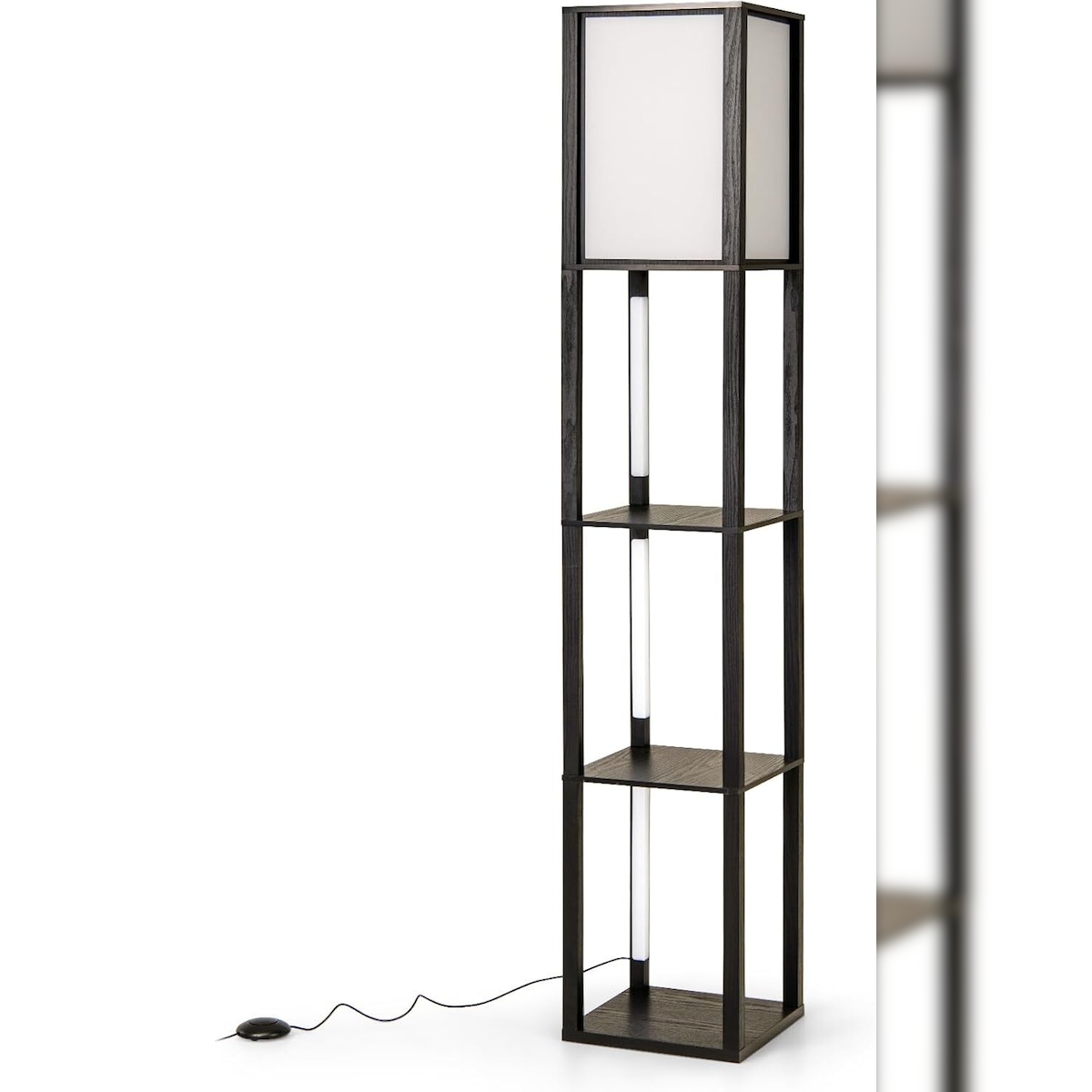 COSTWAY Stehleuchte mit Regalen, Holzregal Lampe mit 3-stufig einstellbarem LED-Streifen und Fußschalter, Stehlampe