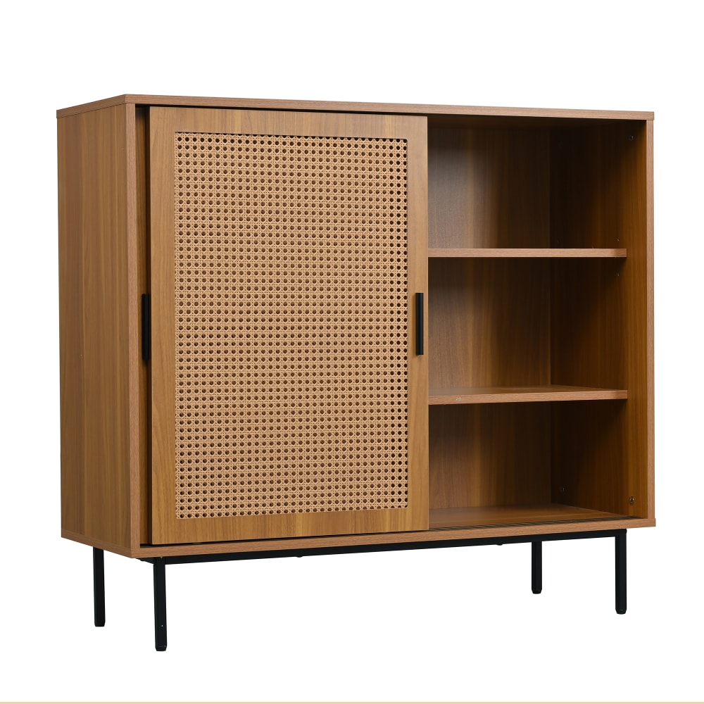 Credenza in legno chiaro con ante in canna naturale