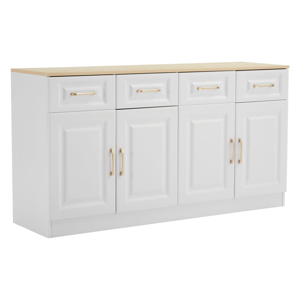 Credenza effetto legno bianco con 4 cassetti e 4 ante