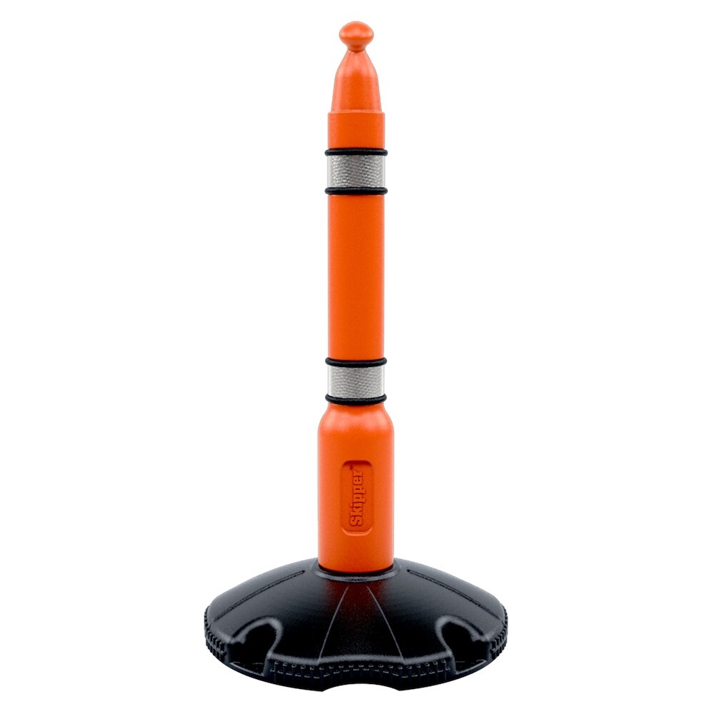 PROREGAL Kunststoffpfosten mit reflektierenden Streifen für Leitkegelaufsatz mit Absperrband | HxØ 100x9,5cm | Orange-Schwarz