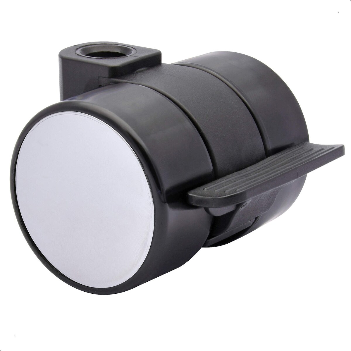 WAGNER Design Möbelrolle/Lenkrolle - Ø 38 mm, Feststeller, schwarz mit Kappe chrome, Tragkraft 50 kg - 01010201