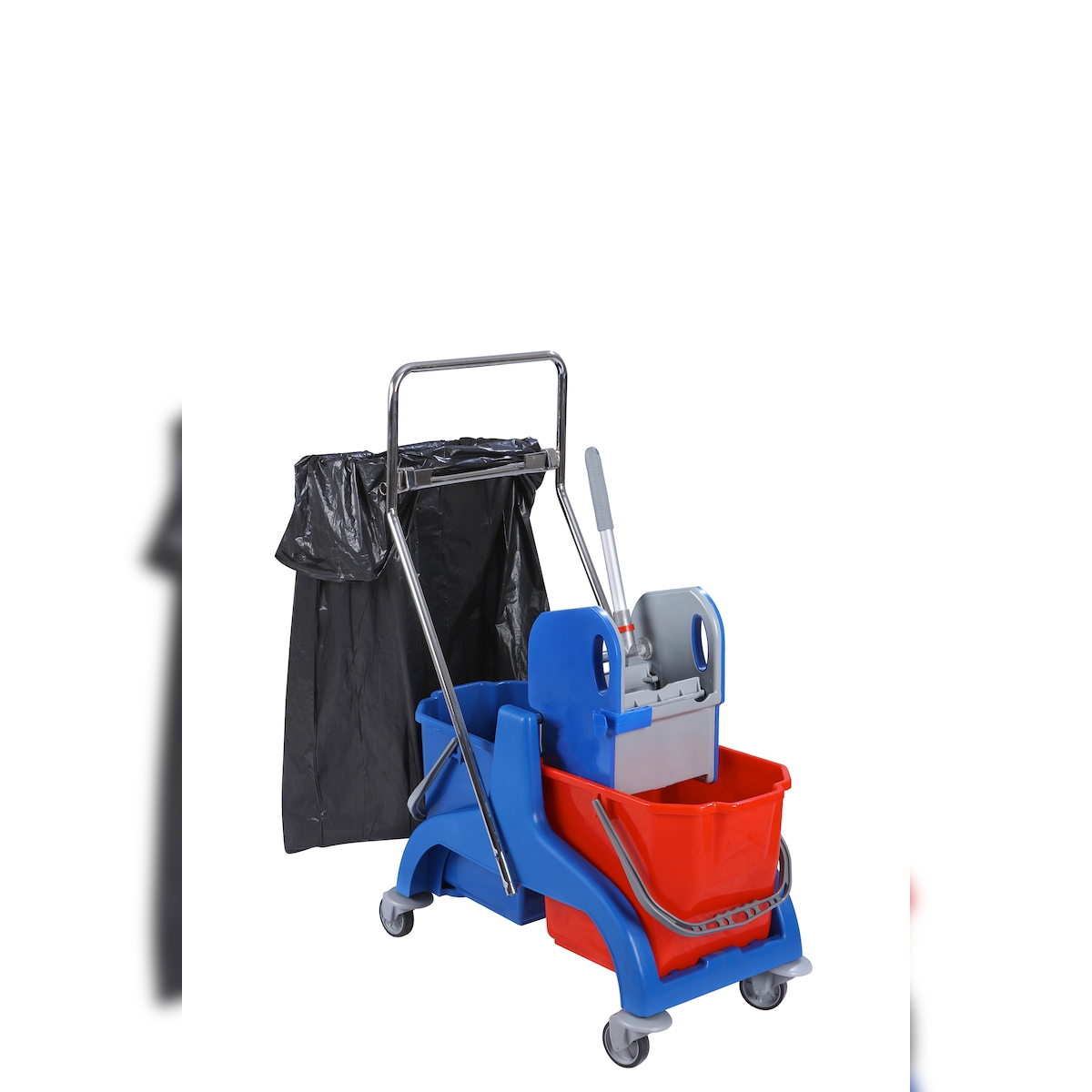 CleanSV® Reinigungswagen Kunststoff Dofa 20 Plus PE Müllsackhalter, Deichselkorb, Putzwagen mit Profi Moppresse und 2 Eimer ca. 18 Liter