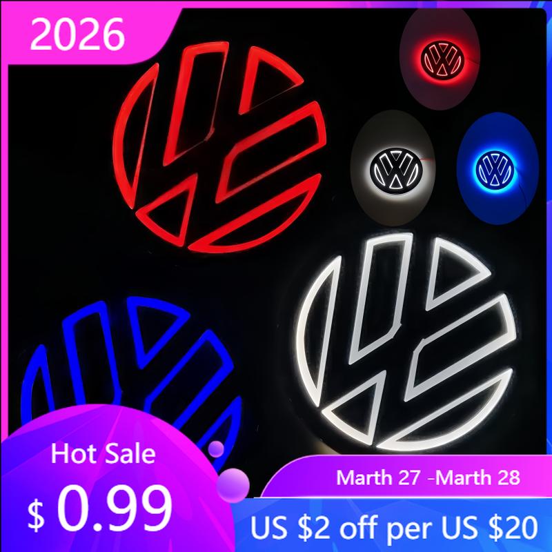 2025 Chaud LED 4D pour lumière de logo Volkswagen autocollants de logo avant et arrière adaptés pour Tiguan/Passat/Golf/Polo/Jetta/Beetle/CC/MK5/