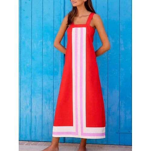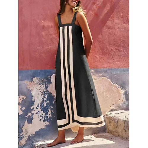Per donna Abito maxi Abito a Tubino Abito Sottoveste Vacanza Casual All'aperto Uscire Vestibilità comoda A righe Senza Maniche Collo quadrato Blu Nero Rosso Caffè Estate