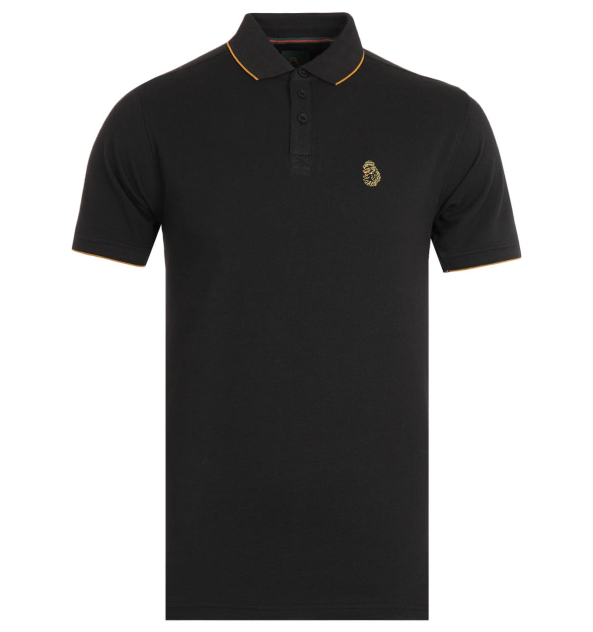 Luke 1977 Mens Ricky Gold Tipped Black Polo Shirt Cotton - Size X-large | Luke 1977 Sale | Discount Designer Brands