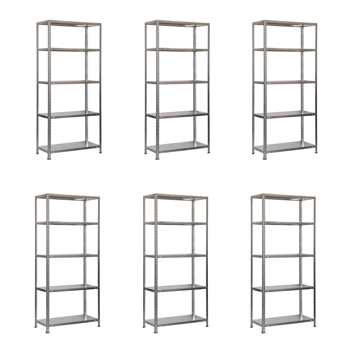 SimonRack Metallregal ohne Schrauben mit Simonforte -Metallschalen 5 Regale. Grau/galva Farbe 2000x1800x450 mm