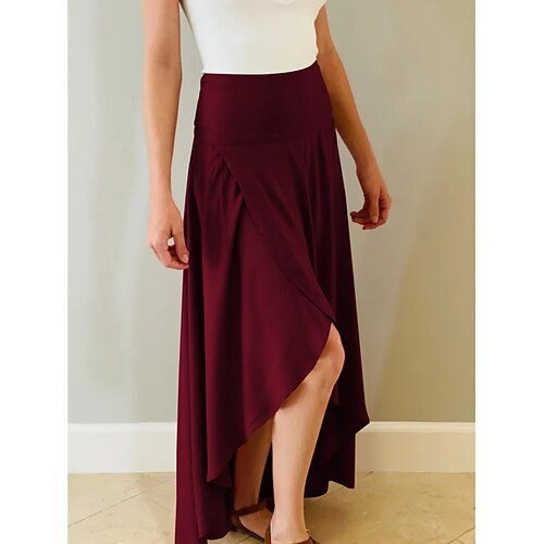 Per donna Gonna Casual Maxi Vita media Gonne Semplice Con Spacco Micro-elastico Vacanza Streetwear Nero Rosso Marrone chiaro Marrone Estate Poliestere