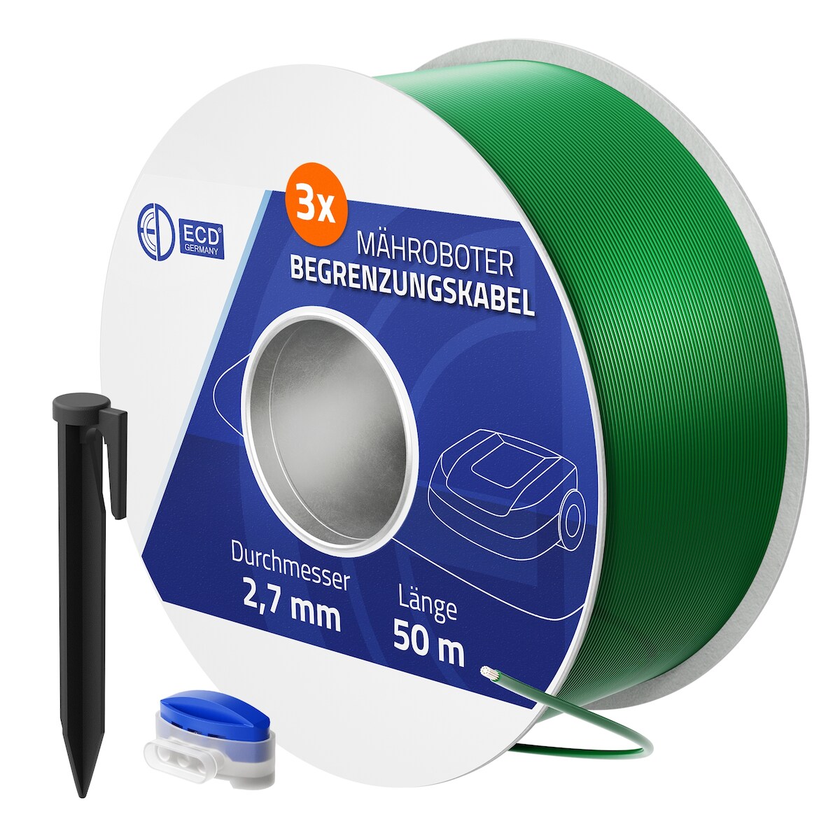 ECD Germany Begrenzungskabel Set 150 m – +600 Erdnägel / 36 Verbinder, verzinntes Kupfer, für Rasenroboter