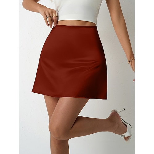Per donna Gonna Linea A Moda Casual Mini Vita Alta Gonne Semplice Inelastico Streetwear Quotidiano Nero Giallo Rosa Rosso Estate Raso Poliestere