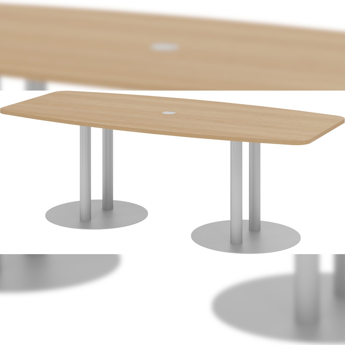 bümö Konferenztisch oval 220x103 cm großer Besprechungstisch in Eiche, Besprechungstisch mit Säulen in Silber, Meetingtisch für 8 Personen, XL-Tisch