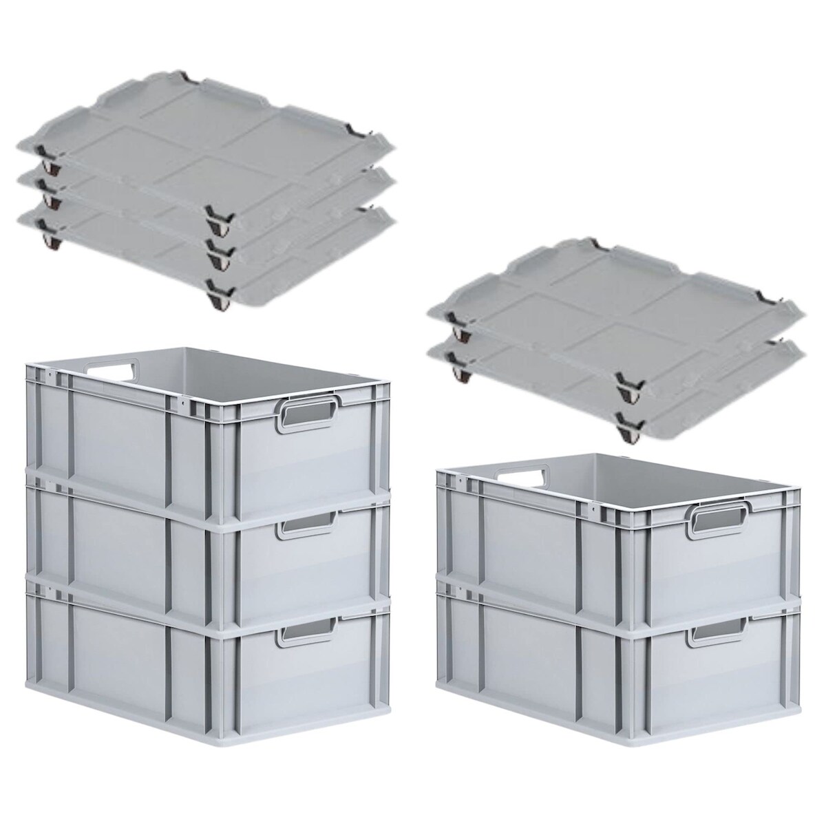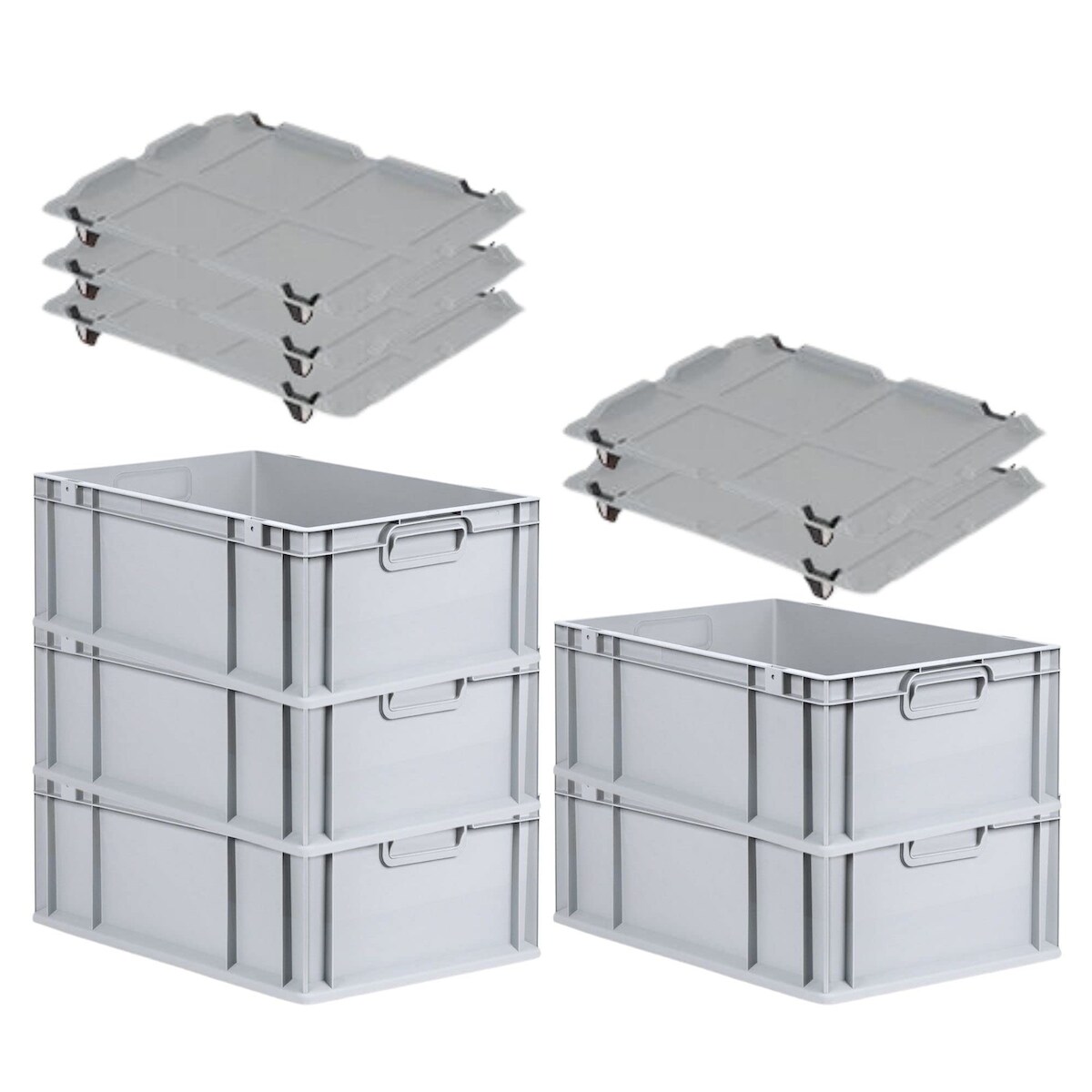 PROREGAL SparSet 5x Eurobox NextGen Economy mit Auflagedeckel & 4x Verschlüsse Schwarz, Griffe zu, HxBxT 22x40x60cm, 44L, Eurobehälter, Box