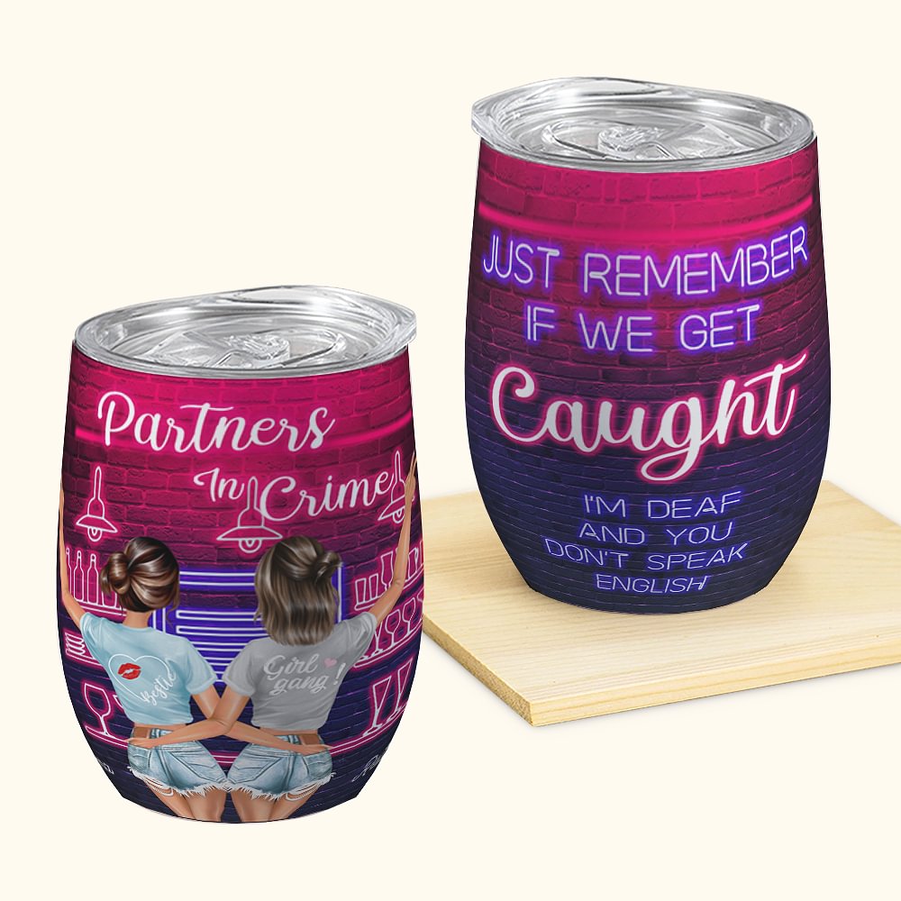 Personalizzato Partners In Crime Just Remember If We Get Caught I Am Deaf And You Do Not Speak Wine Tumbler with Insulation Effect Best Friends Gift (