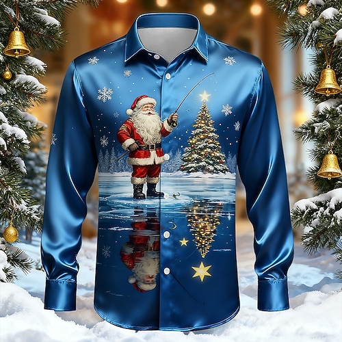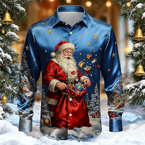 Natale Per uomo Babbo Natale Albero di Natale Renna Camicia Camicia in raso Camicia elegante Manica Lunga Moda Casual All'aperto Feste Ferie Primavera Autunno Collo ripiegato Stampa 3D Camicie con
