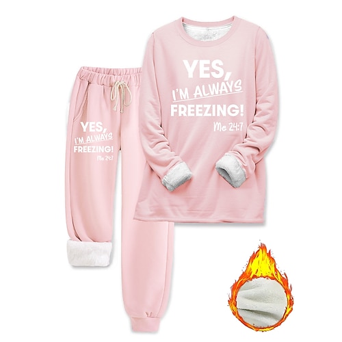 Set di Pigiama in Fleece Fluffoso con Felpa a Maniche Lunghe e Pantaloni con Stampa Testuale Comfort Casual per Casa con Coulisse Invernale Accogliente