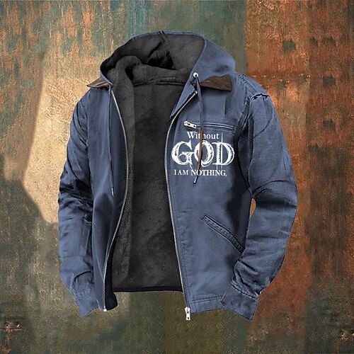 Per uomo Felpa con cappuccio a zip intera Giacca in Pile Felpa con cappuccio in pile Nero Verde militare Con Cappuccio Croce Fede Tasca Stampato Casuale Quotidiano Sportivo Poliestere Streetwear
