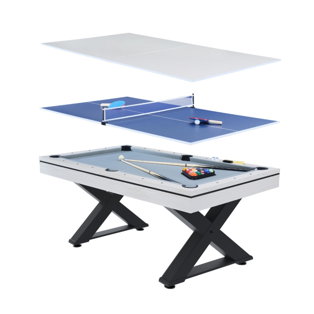 Tavolo multi-gioco in legno bianco ping-pong e biliardo