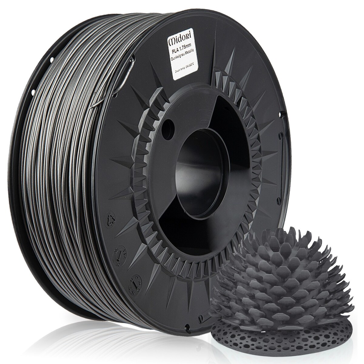 10 x MIDORI® 3D Drucker 1,75mm PLA Filament 1kg Spule Rolle Premium Dunkelgrau Metallic