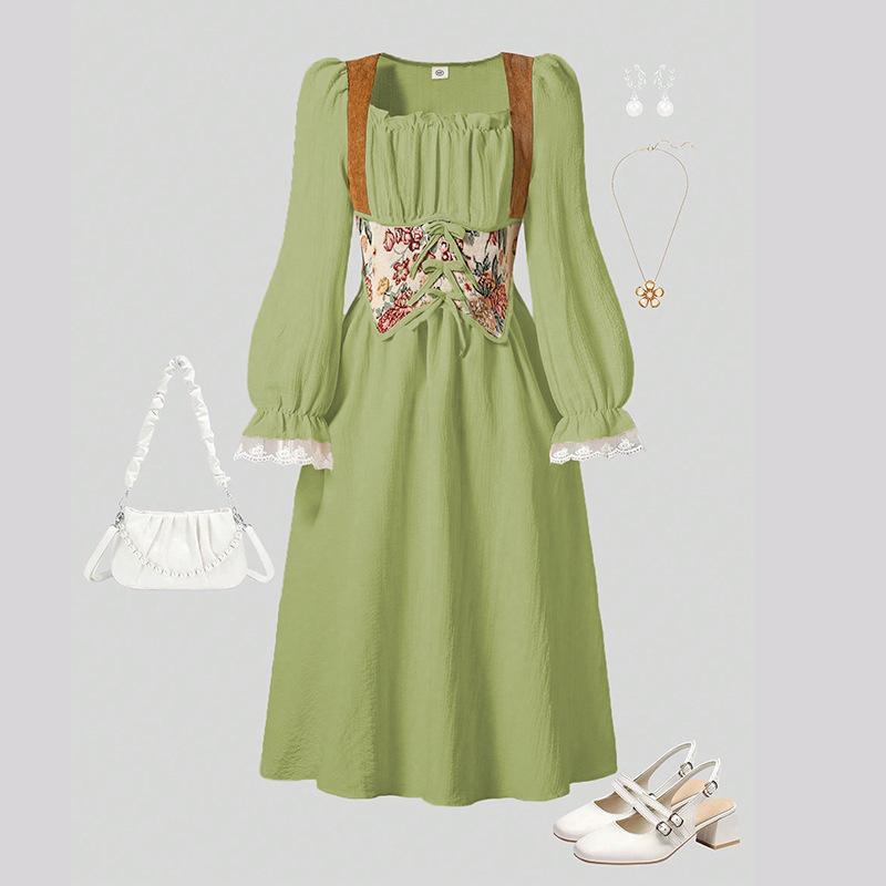 Children's Fashion Dress Spring and Summer Girls' Princess Cinched Waist Dress 170cm green