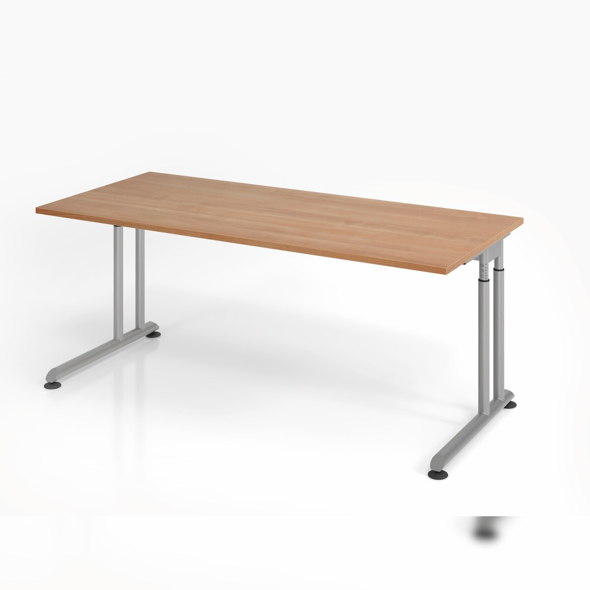 PROREGAL Schreibtisch Nilo | Buche | Graues Gestell | BxT 120x80cm | Arbeitshöhe 68-82cm | höhenjustierbar, 1cm Raster | C-Fuß-Gestell | Bürotisch