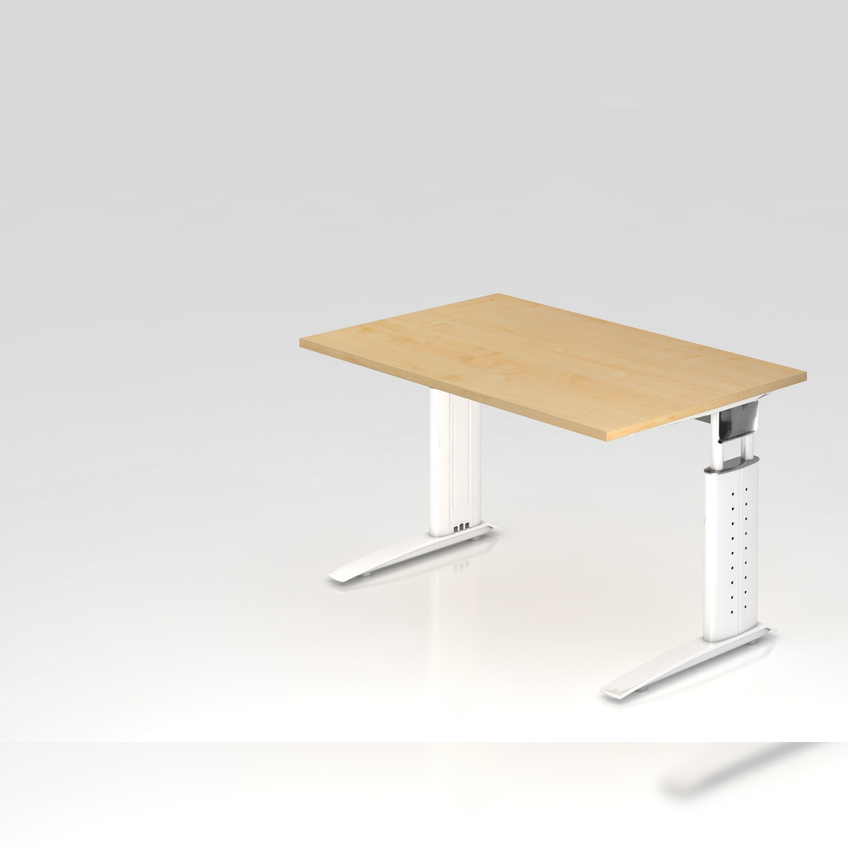 PROREGAL Schreibtisch Mauri | Ahorn | Weißes Gestell | BxT 120x80cm | Arbeitshöhe 68-86cm | höhenjustierbar, 2cm Raster | C-Fuß-Gestell