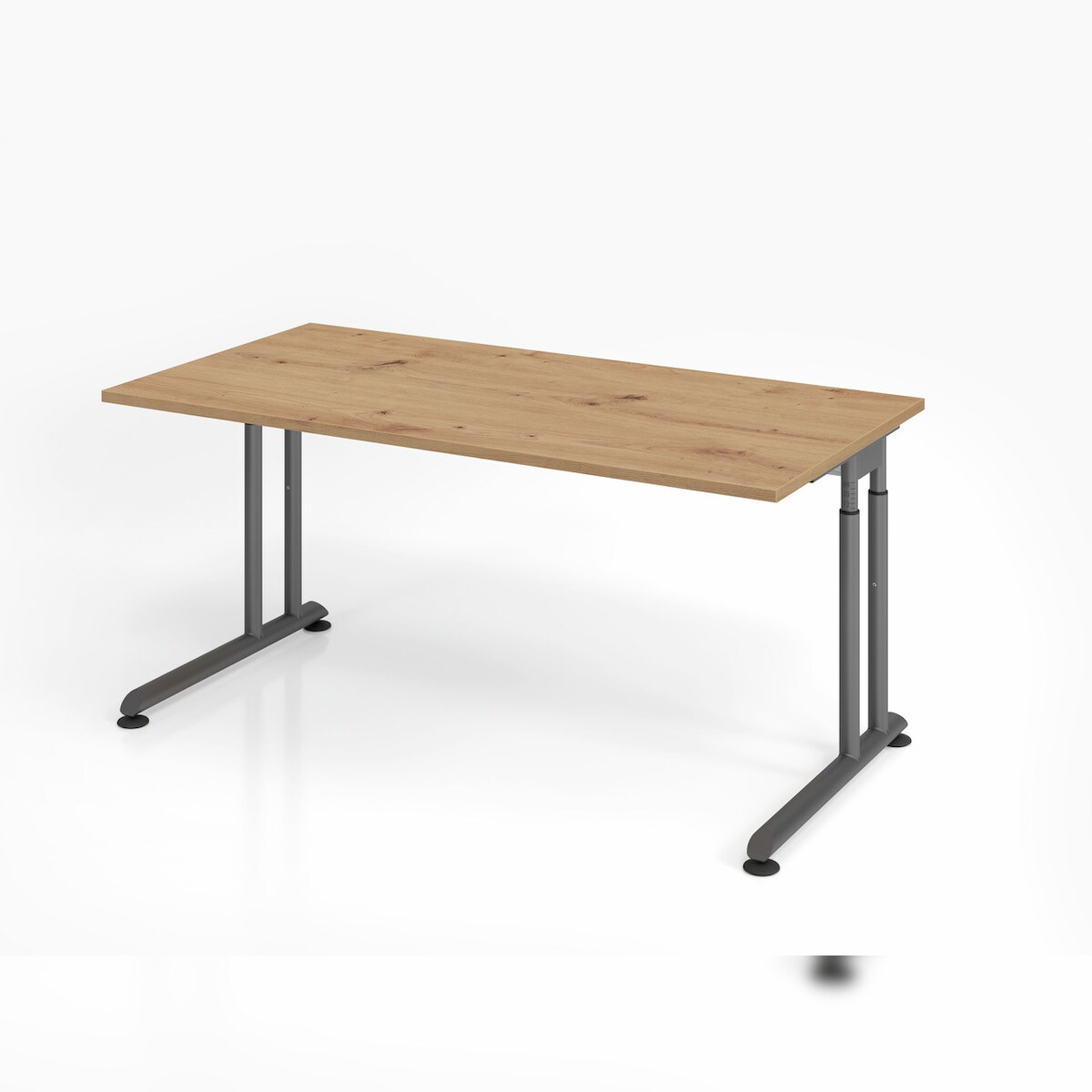 PROREGAL Schreibtisch Mika | Asteiche | Graues Gestell | BxT 120x80cm | Arbeitshöhe 65-85cm | höhenjustierbar, 1cm Raster | C-Fuß-Gestell