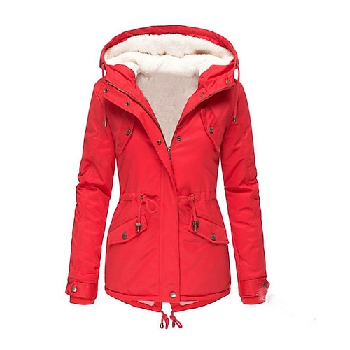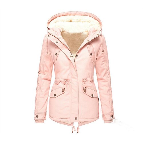 Per donna Cappotto Invernale Giacca in Pile Caldo Confortevole Cerniera Collo in Pelliccia Moda All'aperto Tinta unica Casual Quotidiano Weekend Cerniera Regolare Con Cappuccio Vestibilità regolare