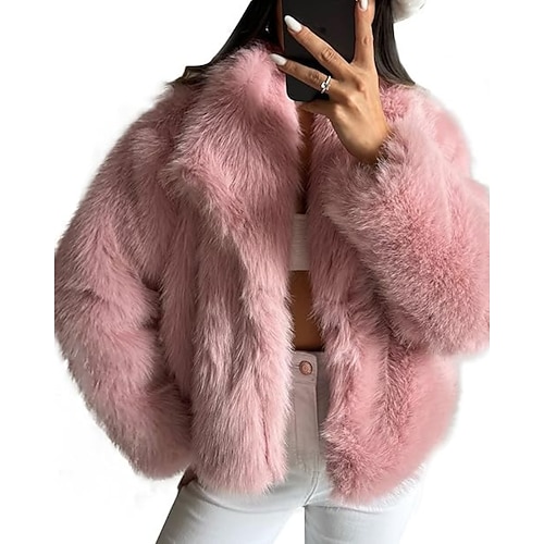 Per donna Cappotto in Pelliccia Sintetica Caldo Confortevole Strappati Pellicce e pelli Casual Semplice Streetwear Ferie Uscire Weekend Regolare Collo ripiegato Vestibilità regolare Manica Lunga