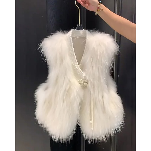 Per donna Gilet Cappotto in Pelliccia Sintetica Caldo Confortevole Bottoni Casual Semplice Vacanza Abbigliamento quotidiano Uscire Weekend Regolare Scollo a V Vestibilità regolare Senza Maniche