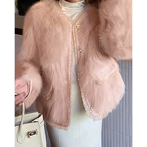 Per donna Cappotto Invernale Cappotto in Pelliccia Sintetica Caldo Confortevole Bottoni Bordo in pelliccia sintetica Attivo Moda Semplice All'aperto Vacanza Uscire Weekend Regolare Girocollo