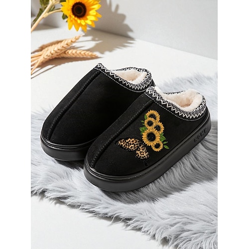 pantofole da donna con stampa a girasole - calde scarpe da interno foderate in pile con motivo a farfalla, comode calzature da casa per regali invernali