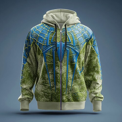 Felpa con Cappuccio Spider 3D da Uomo Punk Cool Collo a Girocollo Regalo Party Streetwear Blu Viola Coulisse Cerniera Autunno Inverno Designer