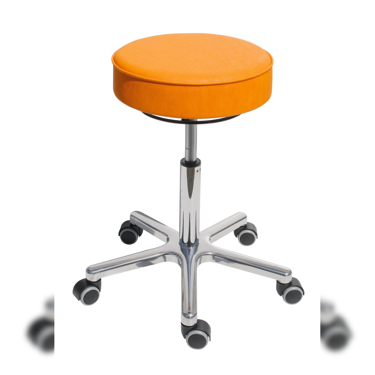 PROREGAL Drehhocker Indianapolis | Sitzhöhe 46-59cm | Ø 53cm | Tragfähigkeit 110kg | Kunstleder-Sitz | Aluminium-Fußkreuz mit Rollen | Gelb
