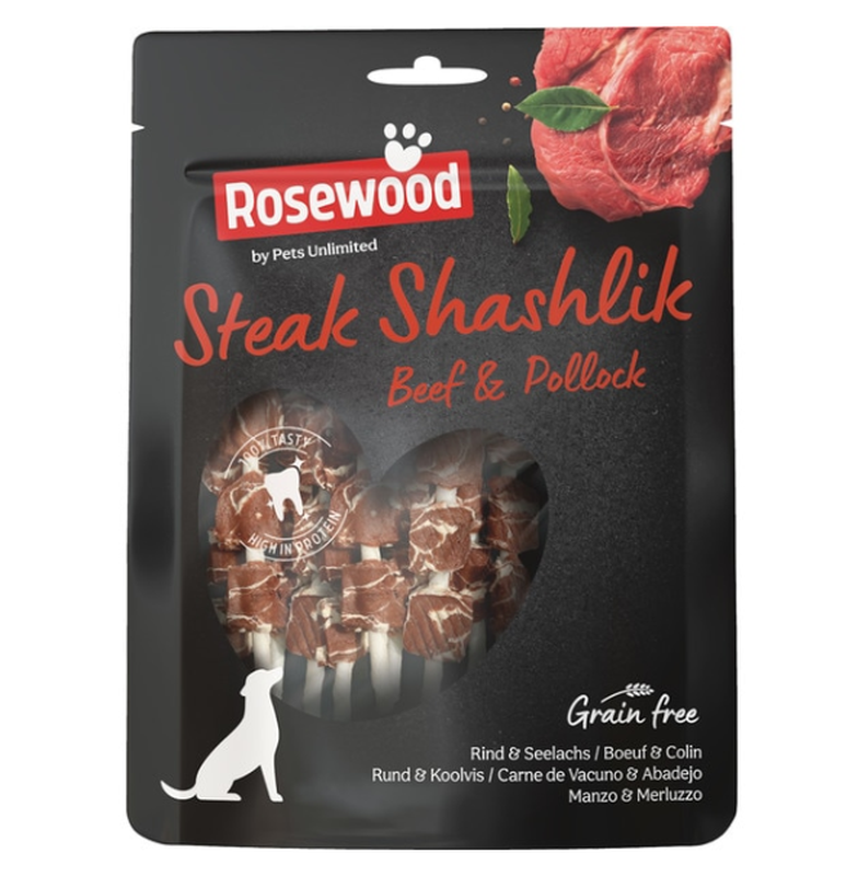 Rosewood shashlik-stokje voor honden met rundsmaak