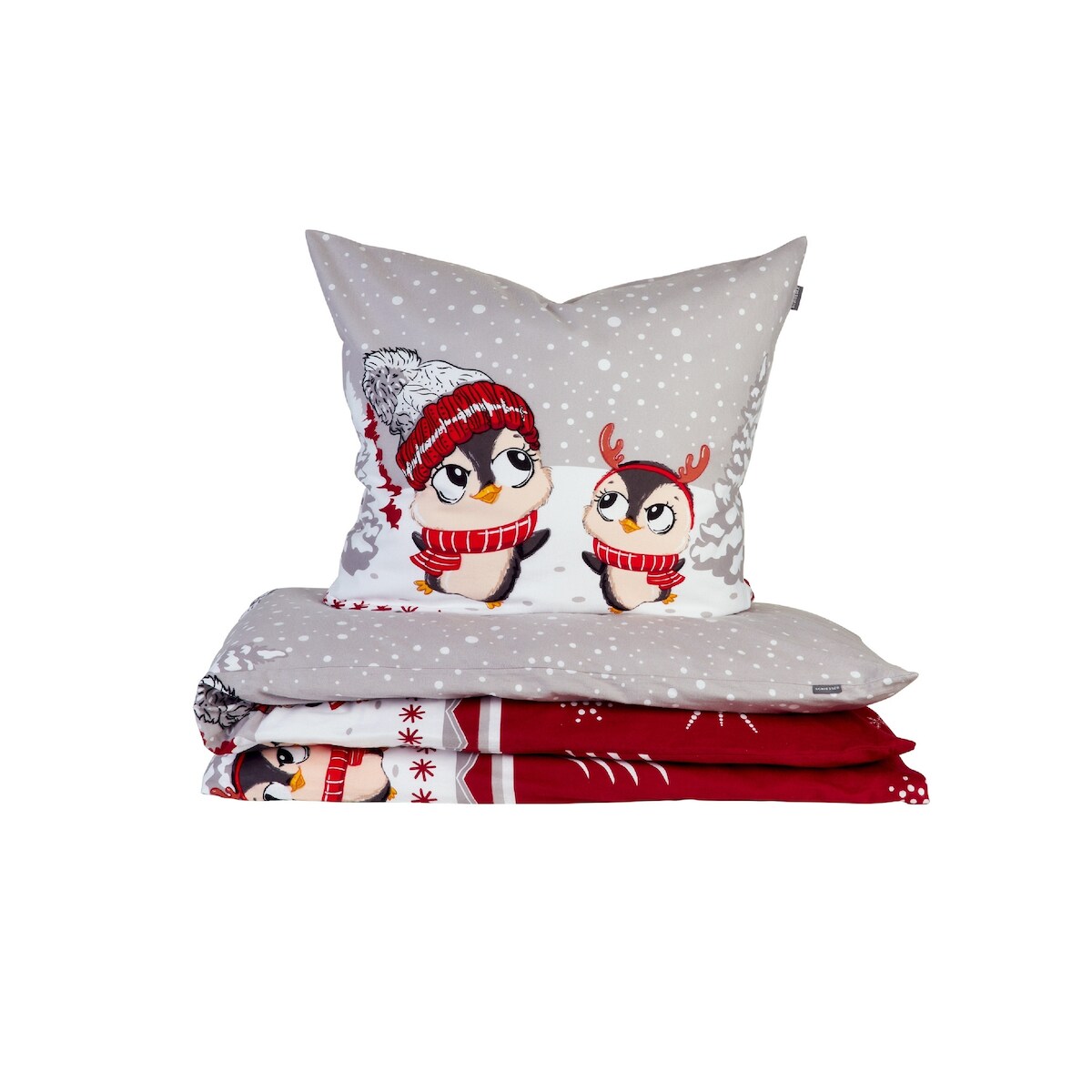 Bettwäsche SCHIESSER "Antoni aus weicher Baumwolle mit coolem Winterprint", rot, B/L: 135cm x 200cm, 1 Stk., 1 Stk., Feinbiber, B/L: 80cm x 80cm, 2 Stk., Feinbiber, Obermaterial: 100% Baumwolle, Bettwäsche, Bettwäsche, MADE IN GREEN by OEKO-TEX-zertifizie