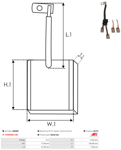 AS-PL Kohlebürste, Starter SB2004 21308311,22505322,22505323 23331Z9003,22503323,22507323,23331Z9002,23380J5500,21305312,21309312,JASX3637,21302250