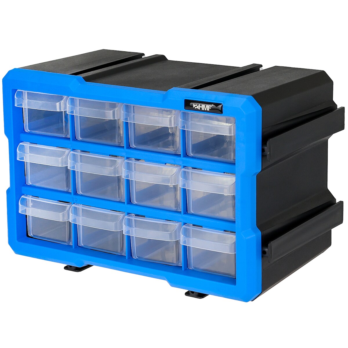 HMF Sortierbox für Kleinteile mit 12 Schubladen, Sortimentskasten für Schrauben und Werkzeug, 24 Fächer, 26,5 x 26,5 x 16 cm, Blau-Schwarz