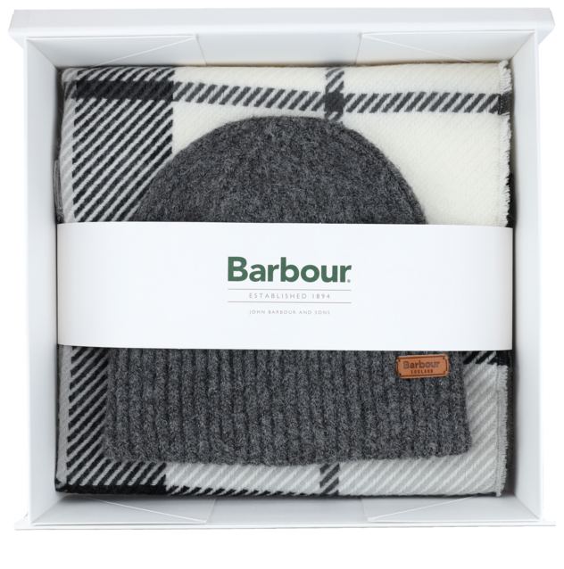 Barbour Mütze "Pendle" + Schal "Blair" Geschenk-Set Gr. ONE/SIZE in grau | Mütze: 97% Recycelt Polyester
