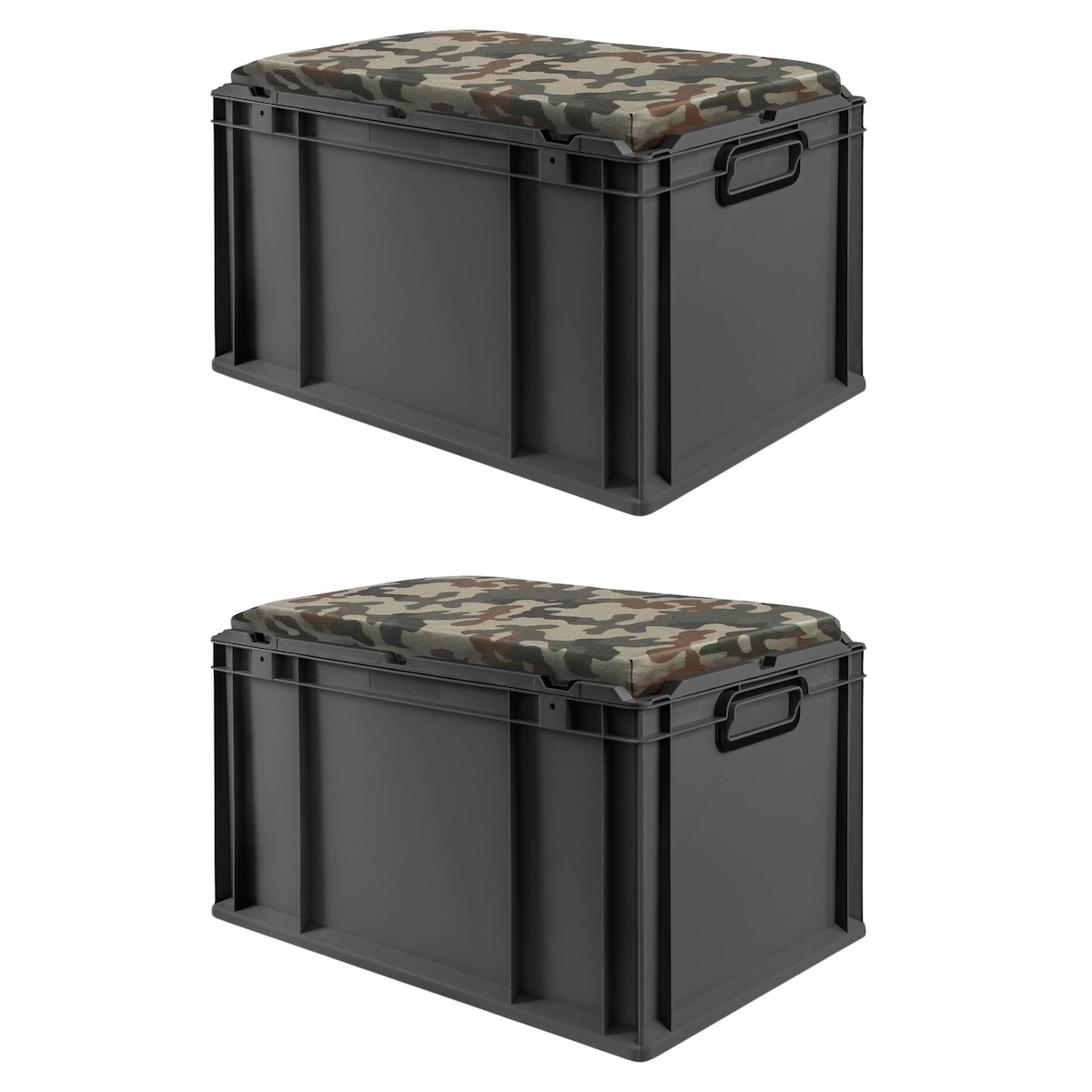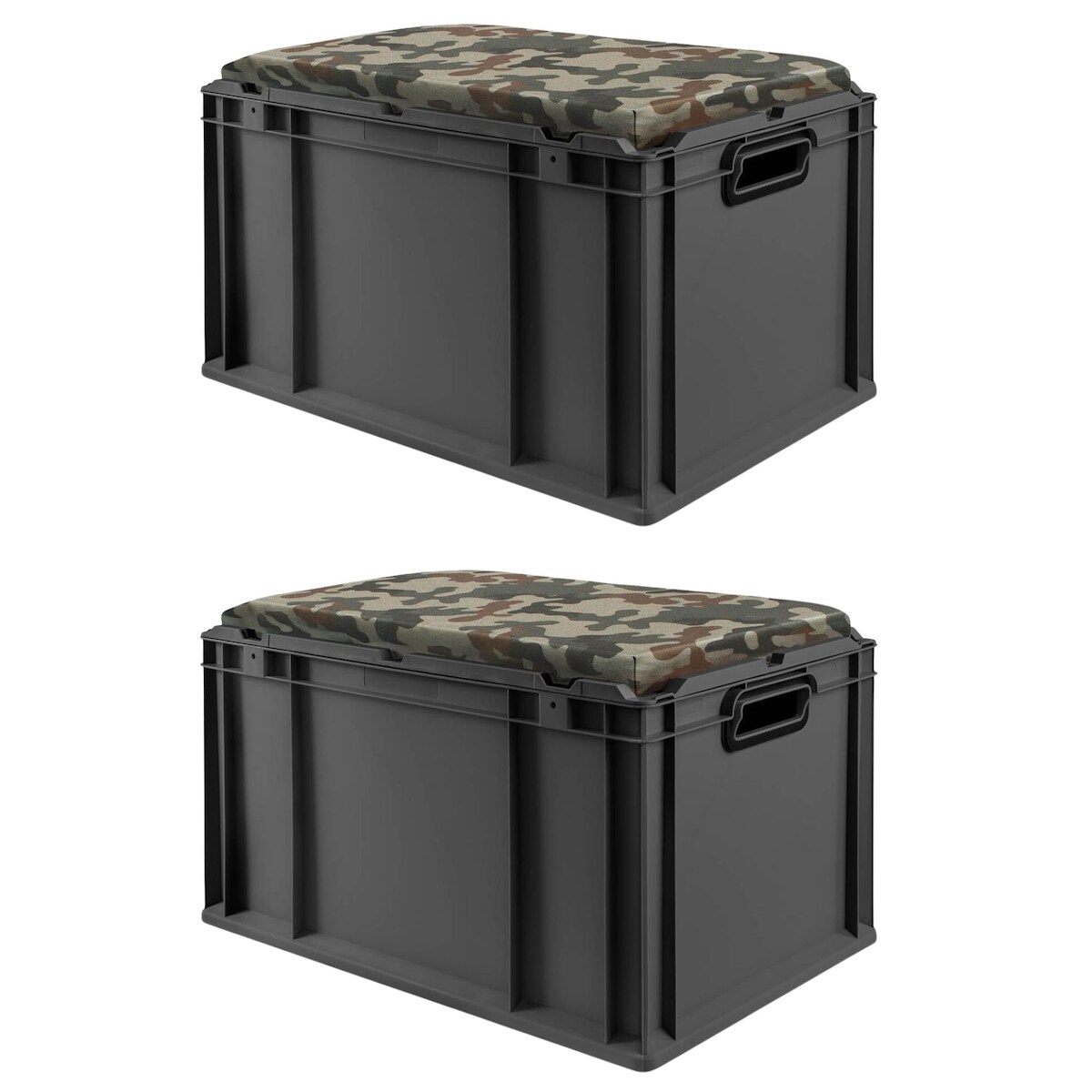 PROREGAL SparSet 2x Eurobox NextGen Seat Box Camouflage, HxBxT 36,5x40x60cm, 65 Liter, Griffe geschlossen, Schwarz, Eurobehälter, Sitzbox