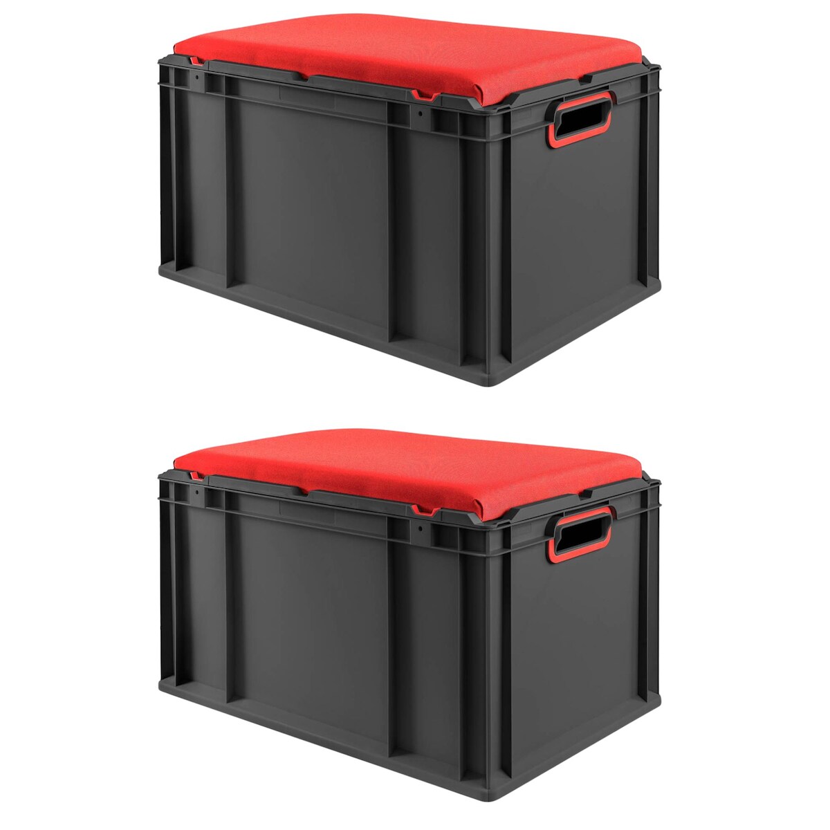 PROREGAL SparSet 2x Eurobox NextGen Seat Box Rot, HxBxT 36,5x40x60cm, 65 Liter, Griffe offen, Schwarz, Eurobehälter, Sitzbox, Transportbox