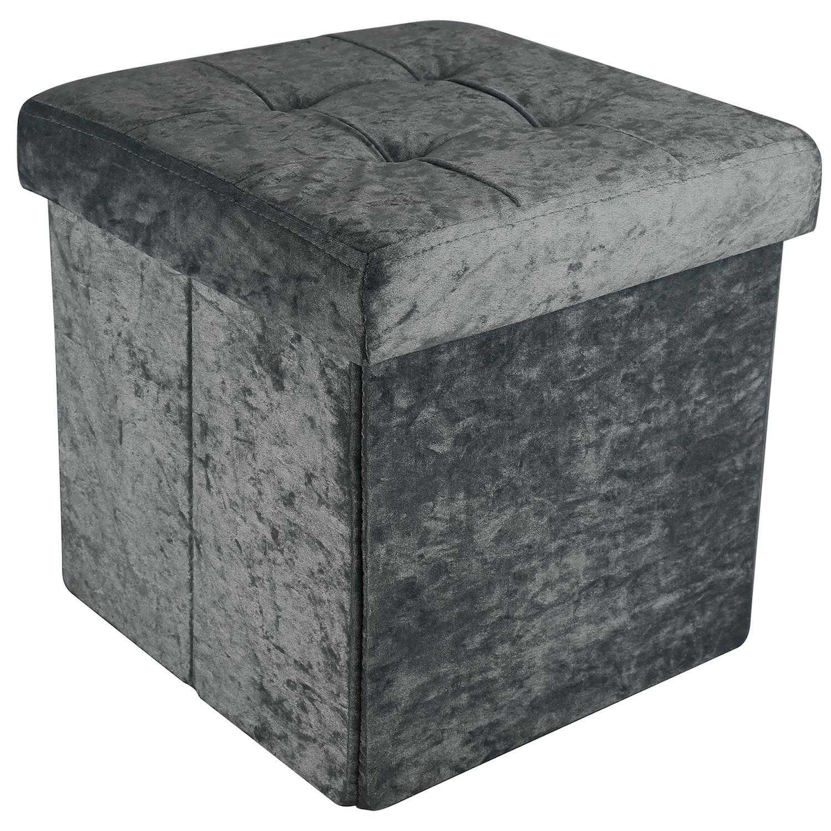 Intirilife Faltbarer Sitzhocker 30x30x30 cm in Samt Grau - Sitzwürfel Fußhocker mit Stauraum und Deckel mit Samtbezug