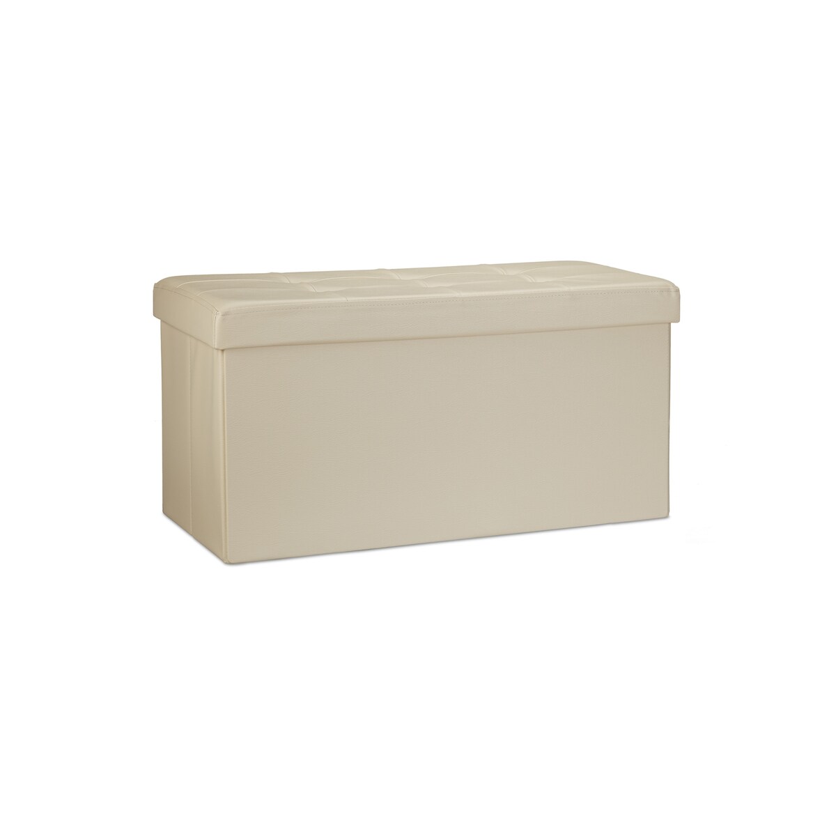 Relaxdays Faltbare Sitzbank 38 x 76 x 38 cm HxBxT, 2-Sitzer m. Stauraum, Kunstleder Sitzhocker 300 kg belastbar, creme