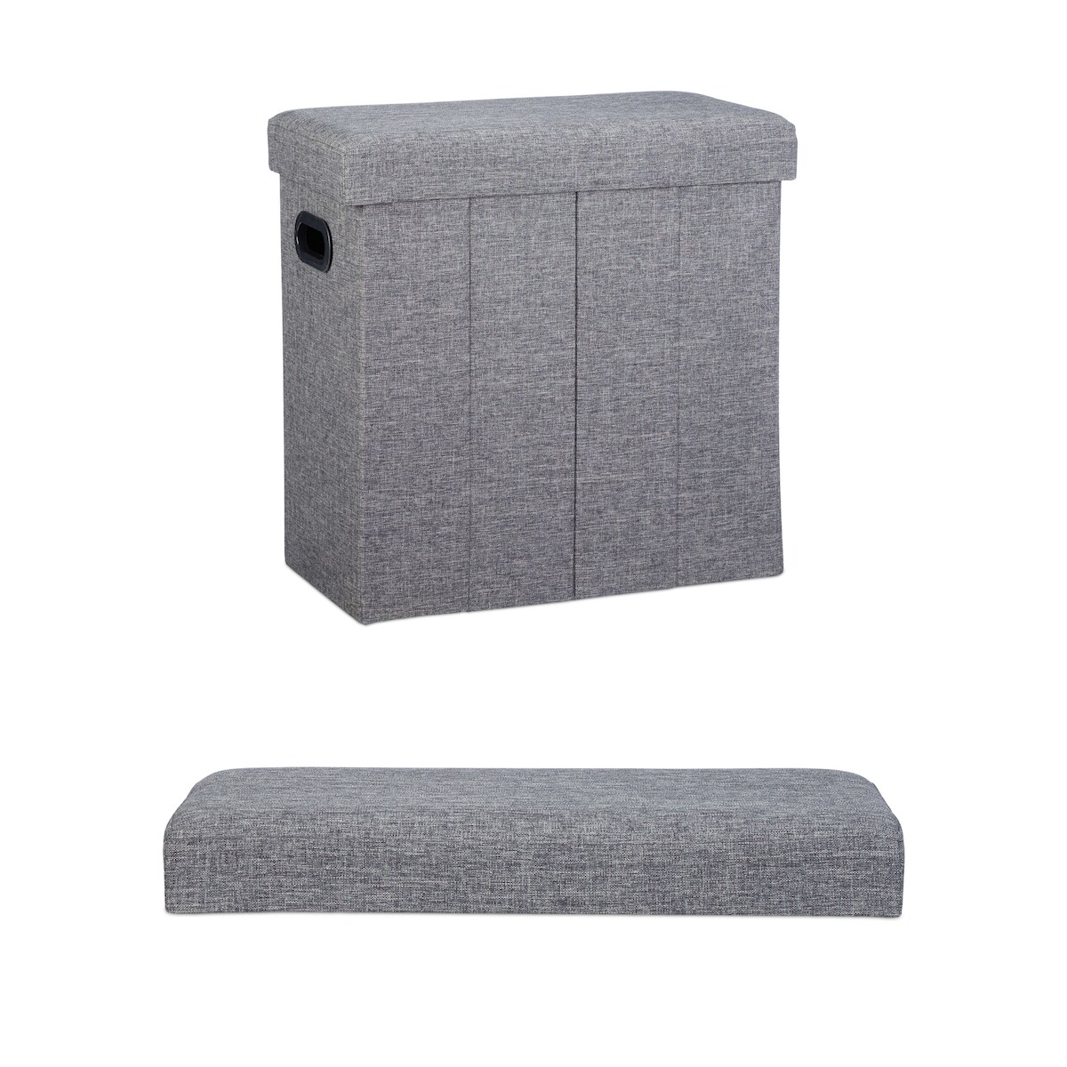 Relaxdays Faltbarer Sitzhocker, HxBxT: 49,5 x 46 x 25,5 cm, mit Stauraum, Griffe, Leinen, Polyester, MDF, dunkelgrau