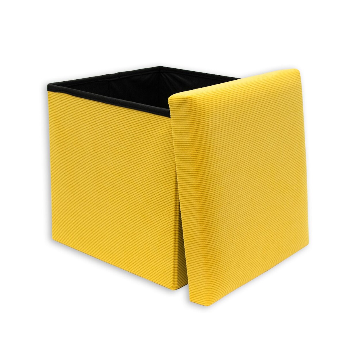 Intirilife Faltbarer Sitzhocker 38 x 38 x 38 cm in GELB - Sitzwürfel mit Stauraum und Deckel aus Stoff in Cord Optik Fußablage Aufbewahrungsbox
