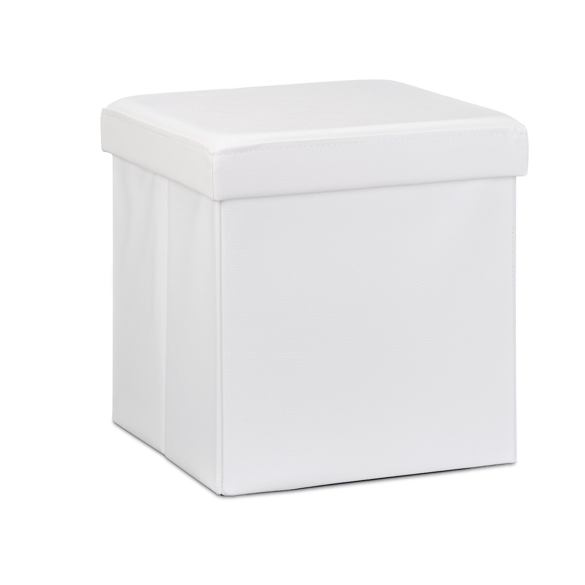 Relaxdays Faltbarer Sitzhocker, Sitzcube mit Stauraum u. Deckel, Fußablage, Sitzwürfel aus Kunstleder, 38x38x38 cm, weiß