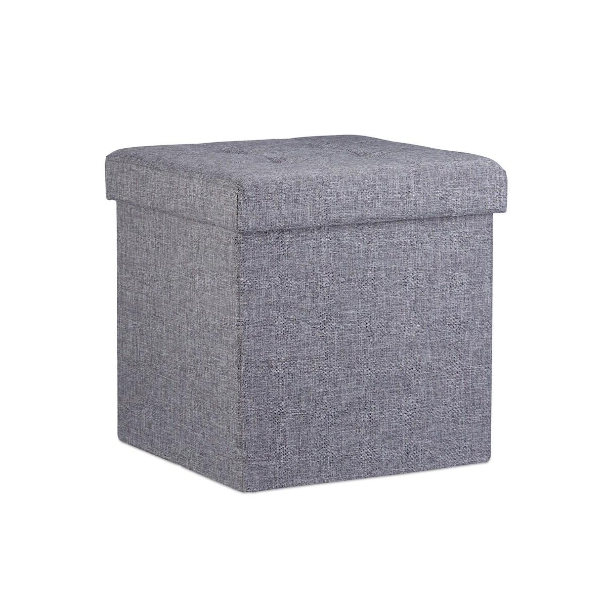Intirilife Faltbarer Sitzhocker 38x38x38 cm in ALASKA GRAU - Sitzwürfel Fußhocker mit Stauraum und Deckel aus Stoff in Leinen Optik